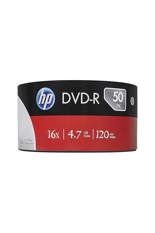 HP DVD-R 4.7GB Recordable Blank Digital Versatile Disc Shrink Wrap 16x Speed (Pack of 50)